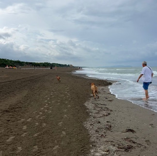 Auf dem Camping Continental nahe San Vincenzo finden wir einen Stellplatz mitten im Pinienwald. Der Camping schliesst im zwei Tagen und wir dürfen uns einen Platz direkt am Meer aussuchen. Die Hunde sind müde und wir geniessen am Abend einen Schwumm im warmen ligurischen Meer. Danach feine Penne al Ragu für 9 Euro auf dem Camping.