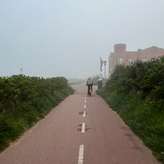 Im Camping Westerland bleiben wir für zwei Nächte. Das Wetter spielt leider nicht so mit und unser 'freier' Tag ist neblig. Wir machen einen langen Spaziergang mit den Hundis entlang dem schönen Sandstrand und drücken das obligate Sylt-Strandfoto. Meine Hundis modeln vor den Strandkörben als ob es ihr Job wäre.