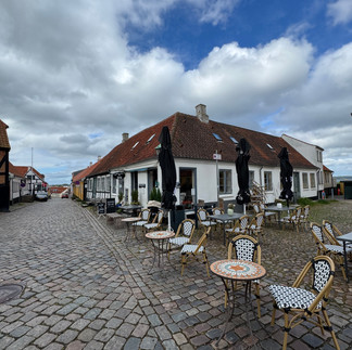 Am Sonntagmorgen ist es vorbei mit dem Regen. Wir schauen uns das verschlafene Städtchen Ebeltoft an. Ich lese im Reiseguide, dass der historische Stadtkern von Ebeltoft eines der schönsten Dänemarks ist. 1301 gegründet war es einst eine florierende Hafenstadt, woran heute das Holzsegelschiff "Fregatten Jylland" im Museumshafen erinnert. Bei meinem letzten Besuch vor über 20 Jahren, wimmelte es hier von Touristen auf der gepflästerten Fussgängerzone. In der Nebensaison scheint es hier leer. Leider - oder zum Glück - sind heute auch alle Shops geschlossen. Sonst wäre das nicht lustig für meine Vierbeiner und meinen Mann! Das Glasmuseum hat allerdings geöffnet und wir finden ein paar schöne handgemachte, farbige Trinkgläser.